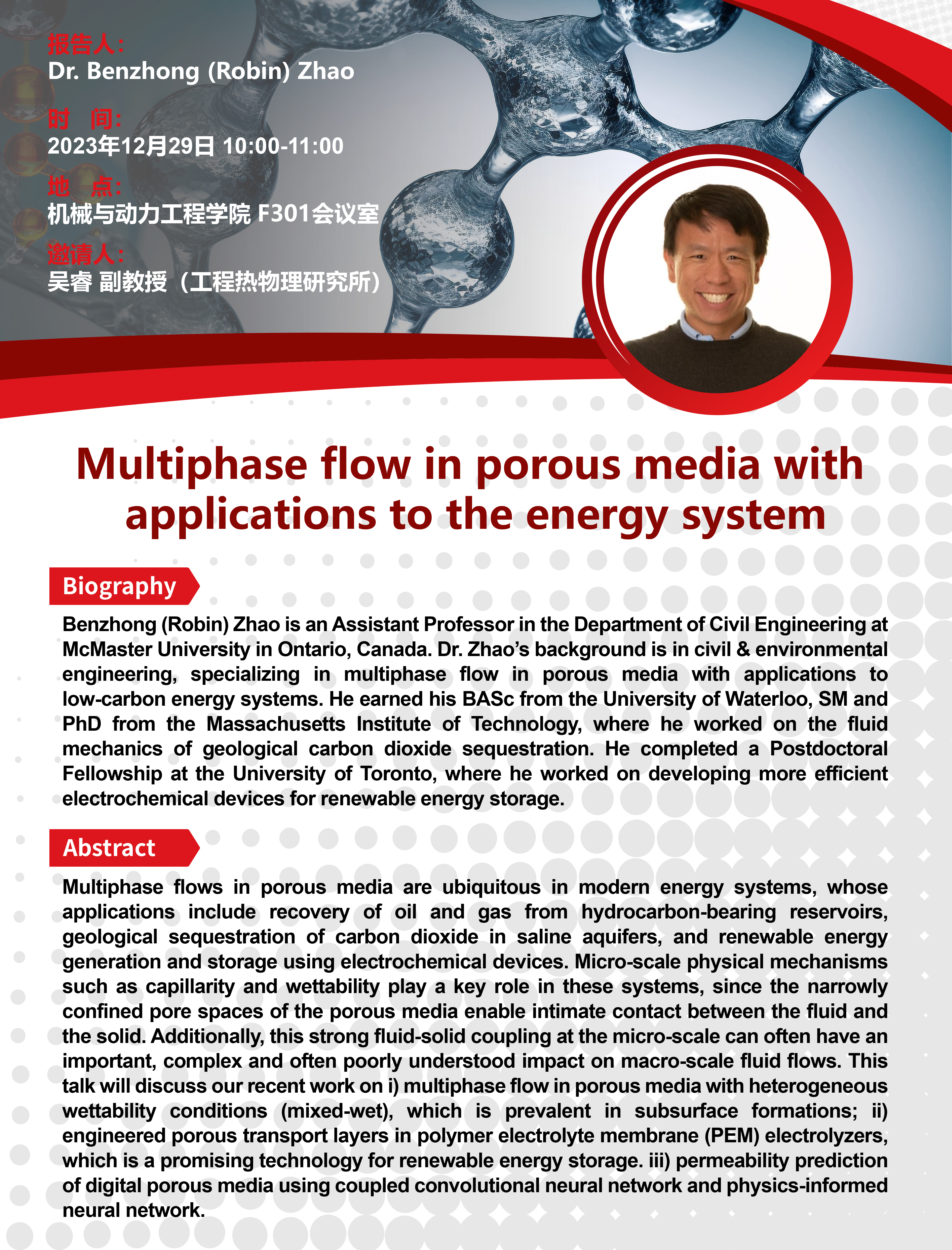 Host: WU Rui, Assist.Professor (Institute of Engineering Thermophysics)