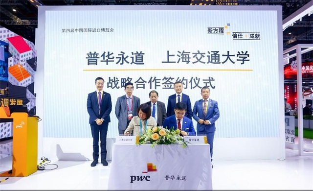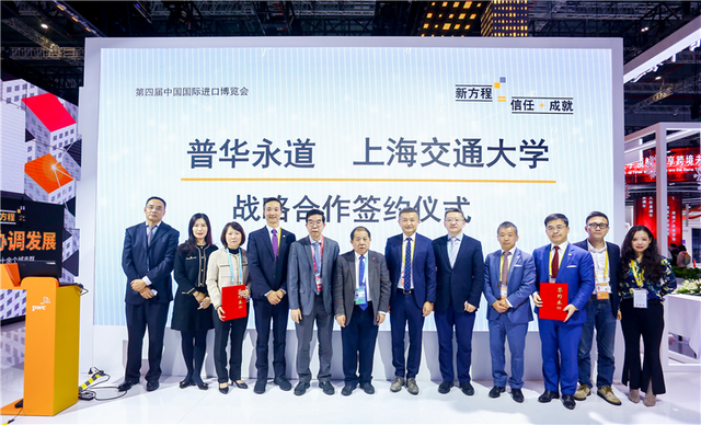 On November 7, SJTU signed a strategic cooperation agreement with PwC at the 4th China International Import Expo. The signing ceremony was attended by Lin Zhongqin, President of Shanghai Jiao Tong University, also academician of the Chinese Academy of Engineering; Huang Zhen, President of Carbon Neutrality Development Research Institute of SJTU, also Academician of the Chinese Academy of Engineering; Huang Jia, managing partner of Shanghai, PwC; and Zhang Lijun, managing partner of China economy, PwC.