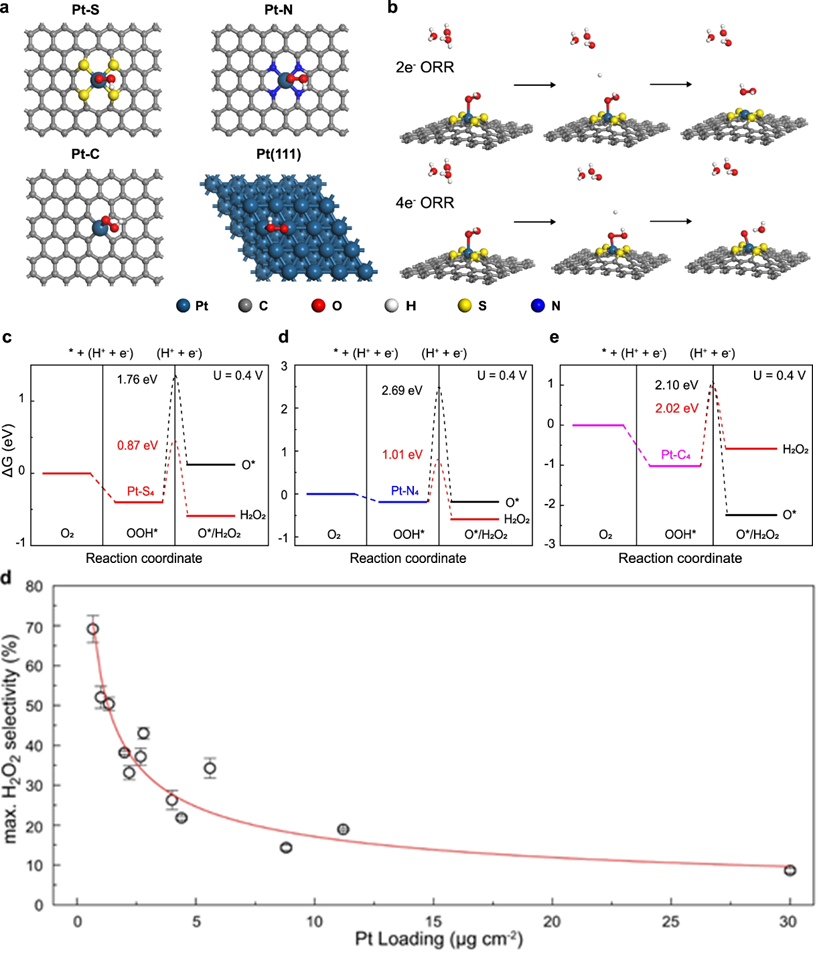 Electrocatalytic oxygen reduction reaction (ORR) is an important reaction in the process of renewable energy conversion and utilization. Molecular O2 can be reduced via a 4e−-pathway into H2O or via a 2e−-pathway into H2O2. The former serves as the vital reaction in proton exchange membrane fuel cells (PEMFCs) and metal-air batteries to maximize chemical energy conversion efficiency, the latter represents an environmentally benign method for the onsite production of hydrogen peroxide commodity. Therefore, a facile ORR reaction pathway tuning is highly demanded for both fundamental mechanistic investigations and different application scenarios.