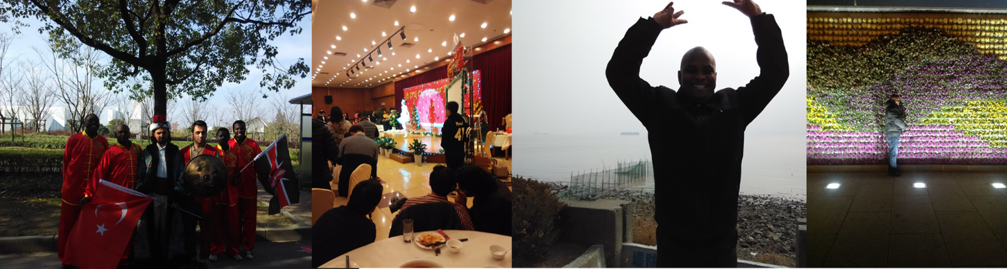 Figure 3. From left to right: Participated in events organized by the University such as playing of drums (打鼓); Very enjoyable and fulfilling Christmas party organized by the University for international students at SJTU; travelling was my other hobby, very likeable for me was the BUND (refer to it as the heart of Shanghai City).