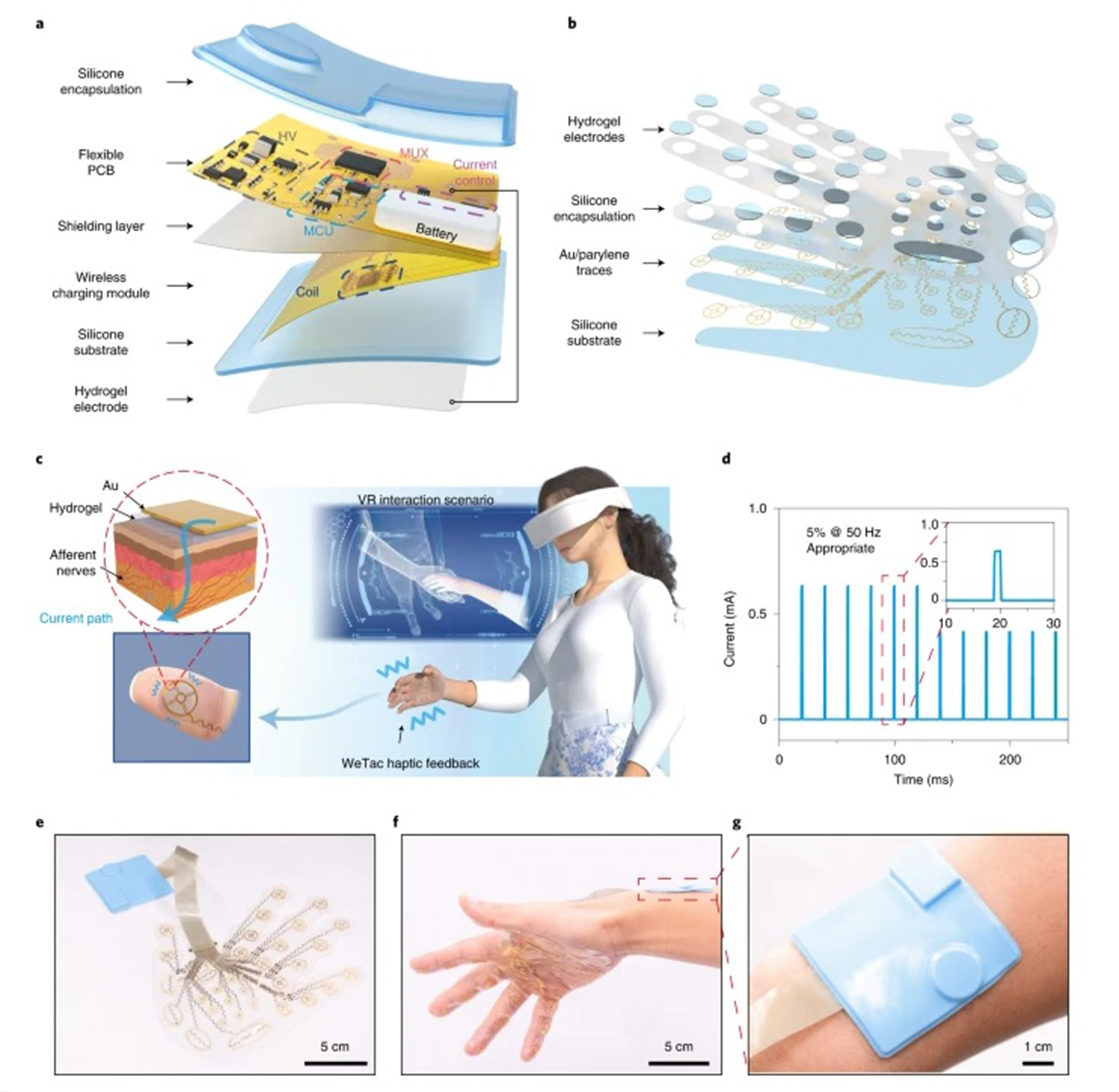 The research team led by Dr. Dong Wang in Department of Industrial Engineering & Management, School of Mechanical Engineering at Shanghai Jiao Tong University and their collaborators at City University of Hong Kong and University of Electronic Science and Technology of China have published joint working journal paper titled by “Encoding of tactile information in hand via skin-integrated wireless haptic interface” in Nature Machine Intelligence (IF=25.898). Dr. Qingyun Huang, a postdoctoral fellow in the same department, is a co-first author of this journal paper.
