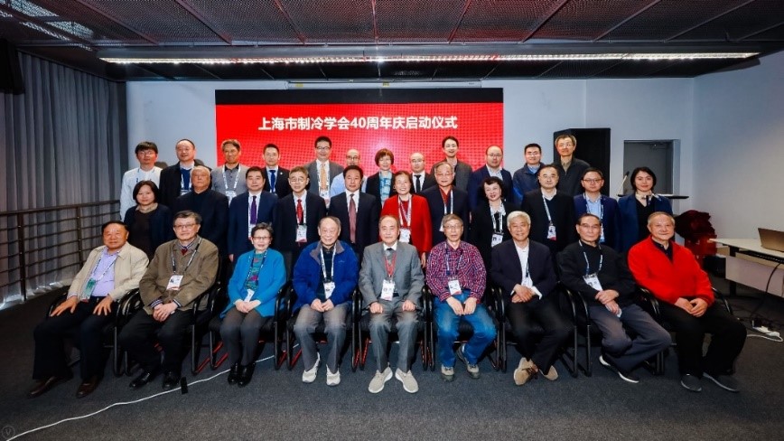 会上举行了上海市制冷学会成立40周年庆启动仪式,中国制冷学会、中国制冷空调工业协会、华东区省级制冷学会、上海市制冷学会相关领导,老专家代表,企业代表等参加了仪式。上海市制冷学会理事长张旭教授致欢迎辞,并与中国制冷学会特邀副理事长孟庆国、监事长金嘉玮,中国制冷空调工业协会副理事长兼秘书长张朝晖共同发布了“上海市制冷学会四十周年庆logo”。老专家代表蒋能照分享了上海市制冷学会成立之初的故事。