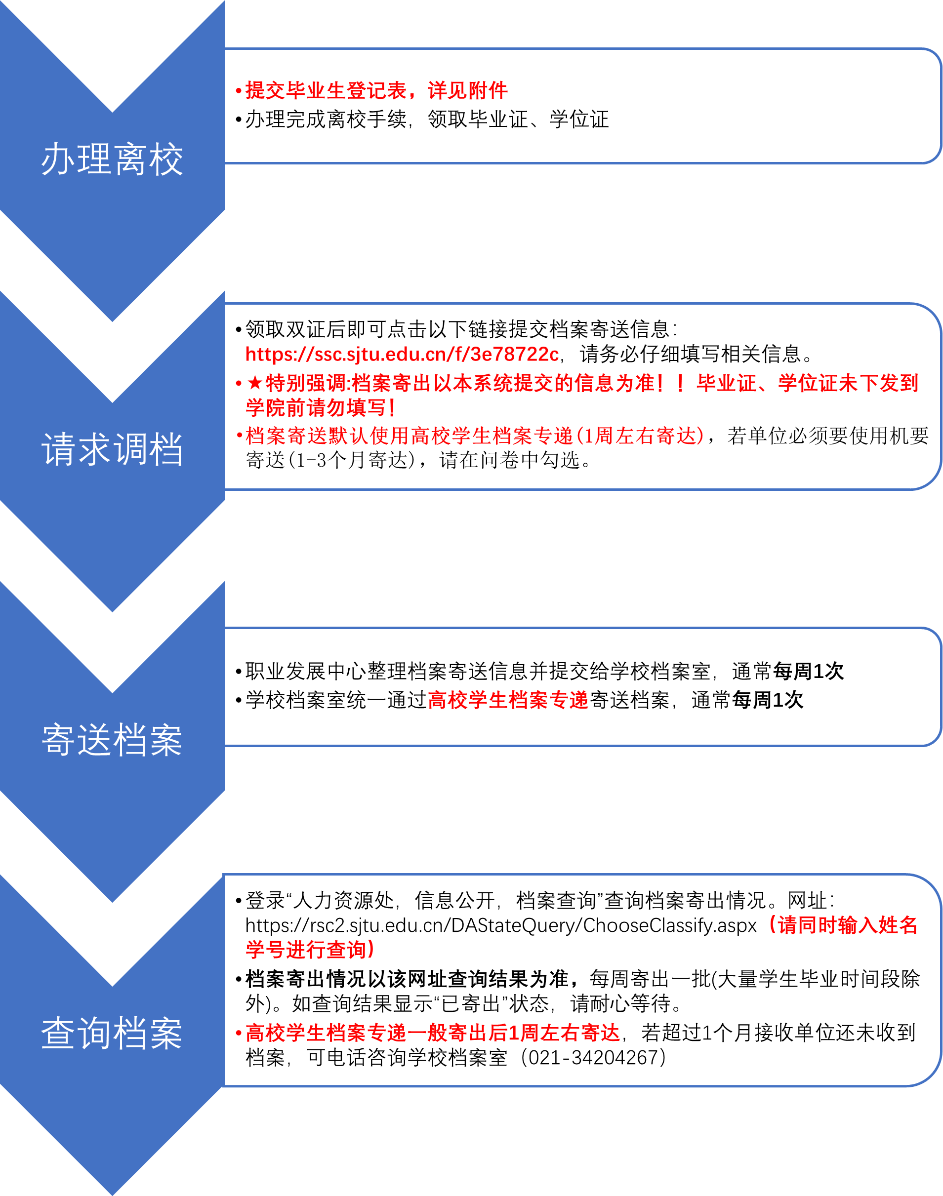 档案寄出情况查询网址:https://rsc2.sjtu.edu.cn/DAStateQuery/ChooseClassify.aspx(请同时输入姓名学号进行查询)