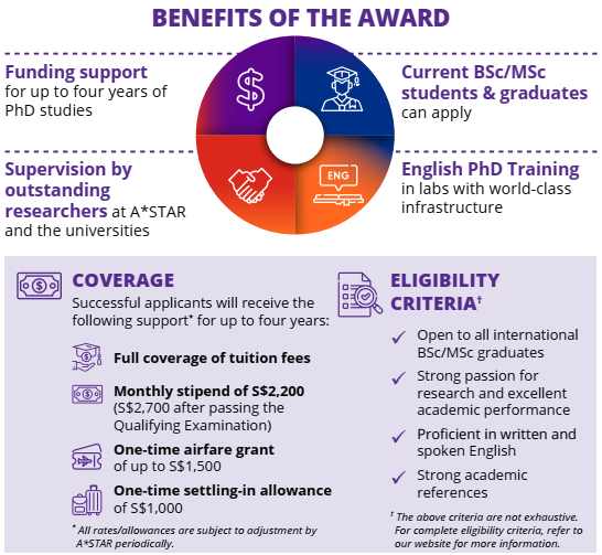 新加坡科技研究局A*STAR推出常年招生项目,涉及攻读博士项目;高年级本科生、研究生;博士生交换项目,并提供相应资助。详情请见:https://www.a-star.edu.sg/Scholarships