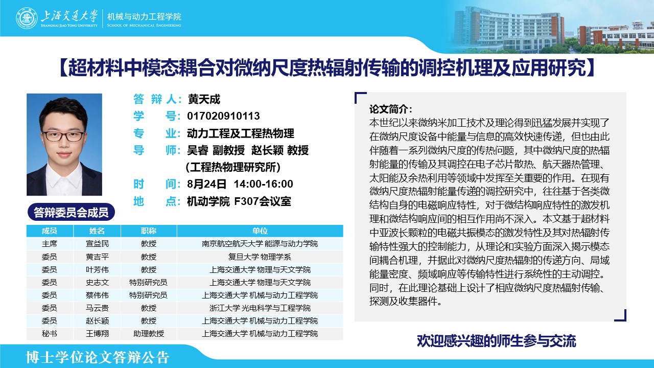 【答辩公告】博士学位论文答辩公告第四期(8月)