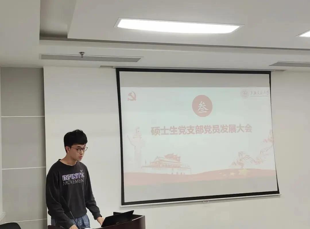 在一年多的任期里,他按照党内规定要求,开展了十余次党组织生活会,并组织了多次大型主题党日活动,包括与多个行业内重点单位例如上海汽轮机厂、上海航天八院等进行合作共建,努力引导支部和系所同学们认识到党的正确领导对行业和国家发展的深刻影响,感受祖国和党的磅礴力量。