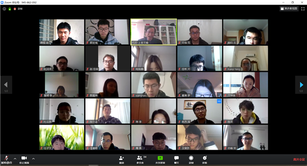 学生支部书记范月恒对疫情防控工作、在线教学工作进行了解读,徐德辉老师最后进行了总结发言,并邀请大家一起为身在湖北的同学加油,大家通过视频,对身在武汉的三位同学喊出了加油!