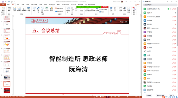 会议最后邀请智能制造所思政阮海涛进行总结。阮海涛肯定并表扬此次组织生活会的形式和内容,详细分析介绍智能制造所毕业生的就业情况,希望大家力所能及为国家贡献自己的一份力量,同时建议大家避免各类外出聚集活动,做好自我防护和隔离。至此,本次组织生活会圆满结束。