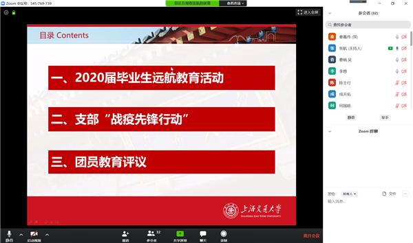 3月26日上午,生命质量所研究生党、团支部通过视频会议形式召开线上党团组织生活会,开展2020届毕业生远航教育。系所思政老师阮海涛列席了会议。会议由党支部书记张航主持。