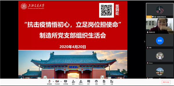 4月20日中午,制造技术与装备自动化研究所通过“腾讯会议”平台,召开了“抗击疫情悟初心,立足岗位担使命”主题组织生活会。思政教师陈旦玥及系所全体党员参加了本次会议。会议由博士生党支部书记党嘉强主持。