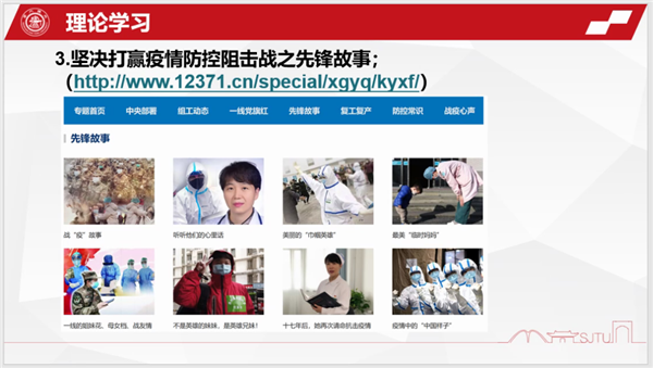 首先硕士支部支书孙岩松带领大家简要回顾了习近平总书记对新冠肺炎的防控形式进行的总结和部署。习近平总书记充分肯定了全国上下对疫情防控工作做出的努力和贡献。同时,对社会经济发展工作进行了部署。总书记提到经济社会是一个动态循环系统,不能长时间停摆。党中央针对生产生活秩序的恢复制定和强化了各方面的举措,充分释放我国发展的巨大潜力和强大动力。最后,强调了加强党对统筹推进疫情防控和经济社会发展工作的领导。同时,对党员同志们也提出了狠抓工作落实,增强忧患意识,提高工作本领的要求。孙岩松同志还向大家分享了疫情防控阻击战中涌现出的先锋故事,带领大家感受阻击战一线、幕后的真挚情感。