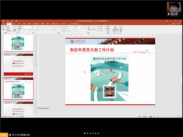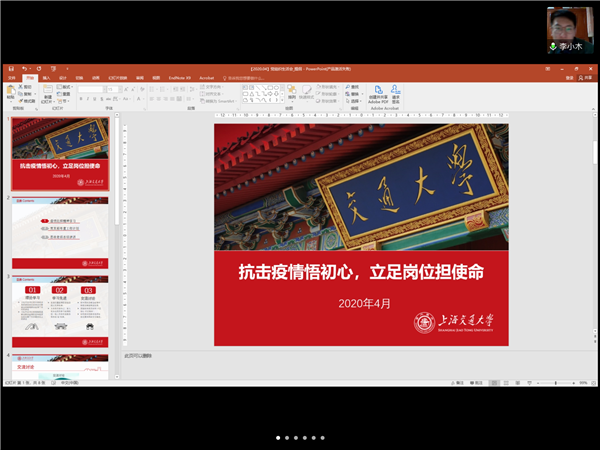 4月23时晚,机械动力学院重大装备设计与控制工程研究所研究生党支部开展“抗击疫情悟初心,立足岗位担使命”主题党组织生活会,会议通过网络会议室形式举行。会议由副书记李化洋主持。
