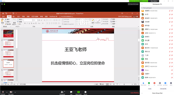 4月23日晚,智能汽车所研究生第一、第二党支部通过视频会议在线召开“抗击疫情悟初心,立足岗位担使命”主题组织生活会。智能汽车所教工党支部书记王亚飞、思政教师陶晓红以及支部成员出席本次会议。会议由智能汽车所研究生第二党支部书记顾启凡主持。