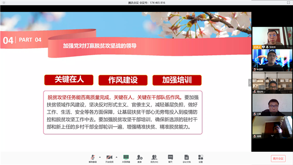 此外,张和坤还组织大家深入学习了习近平总书记在决战决胜脱贫攻坚座谈会上的讲话精神。通过本次学习,各位党员不仅看到我国在脱贫攻坚中已取得的决定性成就,充分彰显了党和国家的英明领导;同时也认识到了打赢脱贫攻坚战所面临的困难和挑战。他号召大家应志存高远,敢于担当,努力为脱贫攻坚贡献个人力量。