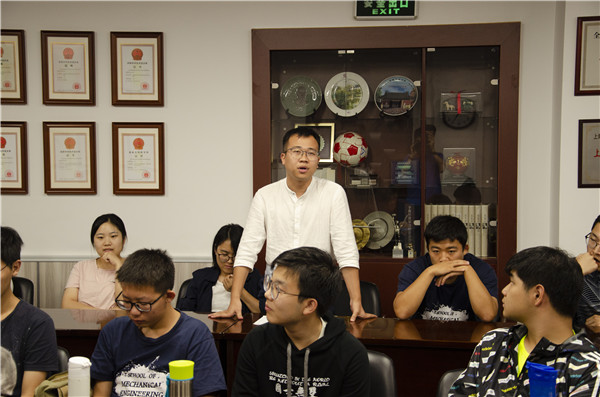 会议伊始,余天佐向新加入核学院的2018级新生党员表示欢迎。之后,为加深同学们对教育大会的认识和了解,余天佐回顾了改革开放后召开的几次教育大会。接着他指出,目前国内高等教育目标已经出现了由“数量”向“质量”的转变,建设“双一流”是目前国家和学校新的目标。在这样的大背景下,余天佐最后强调:作为工科学生,学习了解教育界相关形势政策,是十分有必要的。