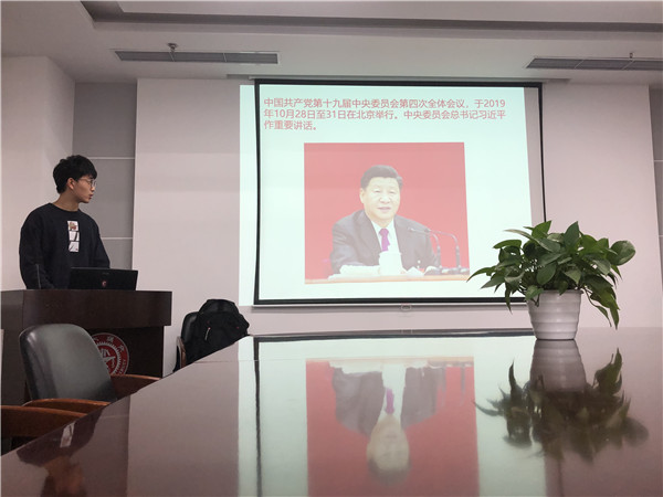 随后,党支部全体成员在会上学习了十九届四中全会精神、《中共中央关于坚持和完善中国特色社会主义制度,推进国家治理体系和治理能力现代化若干重大问题的决定》及习近平总书记关于《决定》的说明,并再次学习了《关于新形势下党内政治生活的若干准则》、《中国共产党廉洁自律准则》和《中国共产党党员教育管理工作条例》。