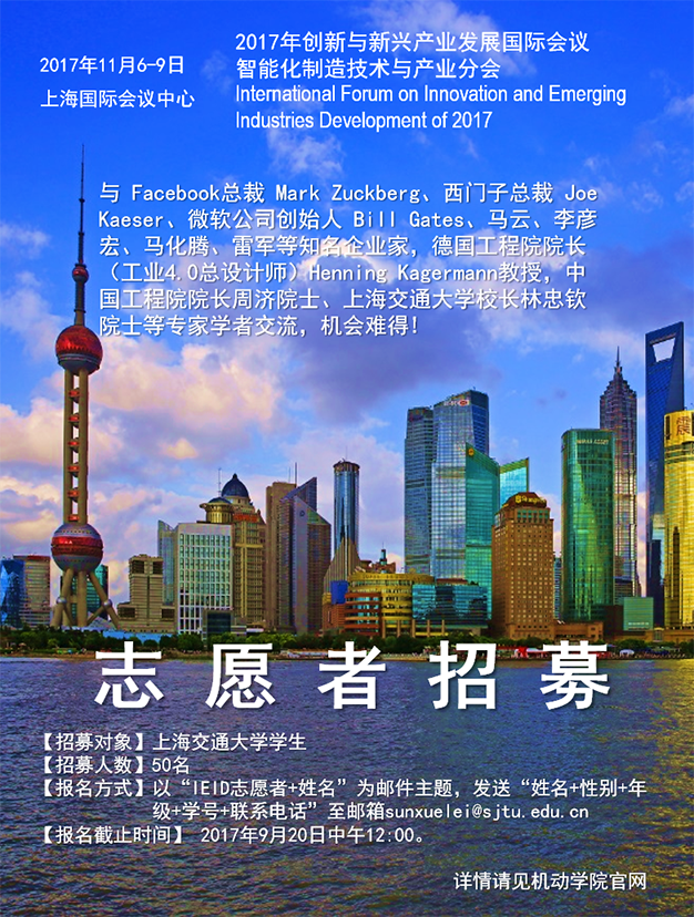 【报名方式】:以“IEID志愿者+姓名”为邮件主题,发送“姓名+性别+年级+学号+联系电话”至邮箱:sunxuelei@sjtu.edu.cn,联系电话:34205880,孙老师。