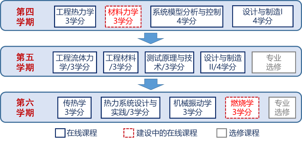 能源与动力工程专业第四到第六学期的核心必修类课程如上图所示。