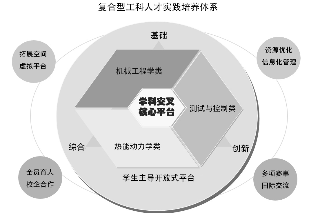 项目针对如何培养实践能力的同时,密切结合各学科前沿发展,将应用创新与科学创新相结合,培养出具有较强创新能力和强烈探究意识的复合型工科人才问题,依托学院基础与实验教学中心,建设了包含课程实验、项目式实践、专业实习和复杂机电综合应用平台,形成了实践能力与科研意识培养相结合的实验实践教学体系;以“机械学习工厂”为基础、测试控制为手段,在能源动力和智能制造等相关综合应用与研究项目中,形成了多学科交叉、产学融合为特征的工程人才培养模式;建设实验教学管理系统、实现教学资源的精益化管理,整合校内外实验资源、实现以校企合作和实践应用为基础的实践能力培养体系;建设虚拟仿真实验教学平台,融合现代信息技术、数字化技术、智能设备及网络云等,通过建模、计算分析及场景设计,实现基础教学、实验分析和创新设计的实验教学功能;构建机械大类国内外竞赛学生培养平台,为复合型工科人才的培养提供条件,打造高水平参赛队伍。