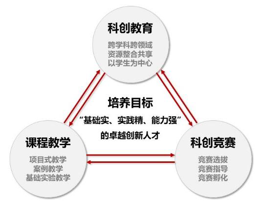 项目针对科技创新人才培养中的课程教育目标不明晰,高校科技创新人才培养体系与专业课程相脱离;学生科创教学和培养缺乏系统性与连贯性,缺乏循序渐进的科创教育引导和全过程的创新意识培养;学生创新实践教学平台较为单一,无法满足学生在科技创新实践中的多元发展等问题,通过创建科创教育与课程教学的“耦合”模式,实现了课程教学与科创竞赛相依托、课程理论与实践应用相结合,进一步培养创新卓越人才;坚持贯穿式科创导师制,通过开展科创活动,阶段性评审学生科研科创项目,不断培养学生创新意识和实践能力;构建了科创教育的梯级循环模式,针对不同基础的学生进行分级、分类引导,通过“高年级指导低年级、研究生指导本科生、本科生参与科技创新工作室”的循环模式,积极发挥朋辈引领和指导作用。