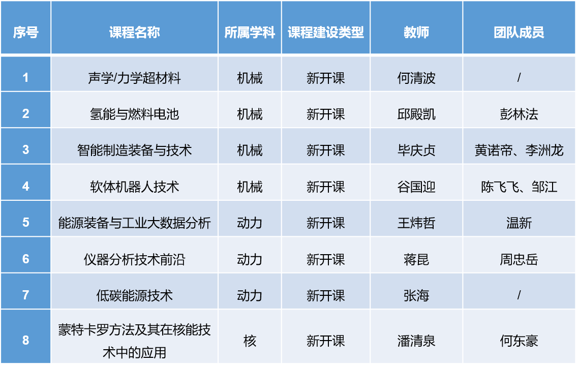 立项评审答辩环节,《智能制造装备与技术》等6门机械学科申报课程、《能源装备与工业大数据分析》等4门动力学科申报课程、《蒙特卡罗方法及其在核能技术中的应用》等3门核学科申报课程的负责人,从课程定位与内容、国内外课程开设情况、课程前沿性和必要性、课程建设思路、个人教学能力等方面进行了详细阐述。经评审,《声学/力学超材料》等8门课程获批立项,建设周期分为一年期(2022年9月-2023年7月)和两年期(2022年9月-2024年7月)两类。