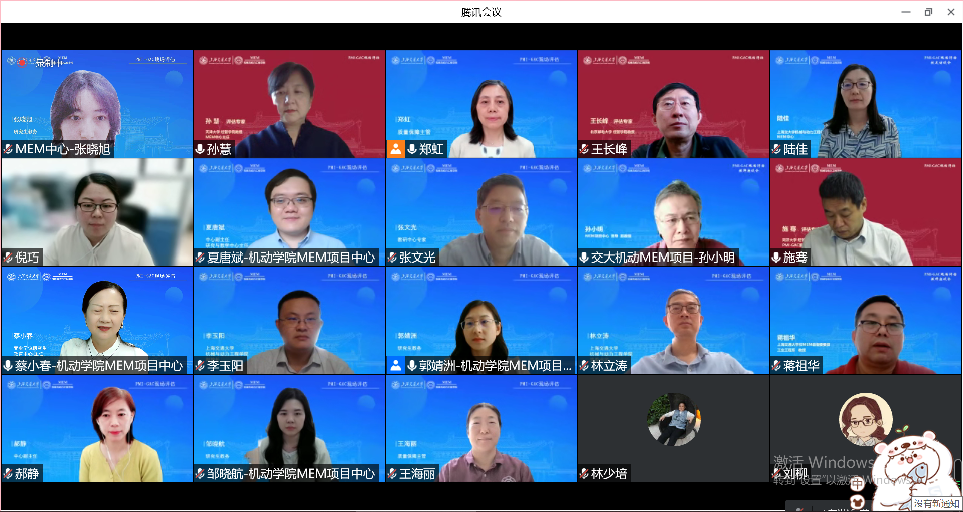 线上认证评估专家组由天津大学MEM项目中心主任、管理学院教授孙慧,同济大学经济与管理学院党委书记、PMI-GAC 董事会成员施骞教授,北京邮电大学经济与管理学院王长峰教授组成,PMI-GAC中国项目教育中心(CPEC)主席、GAC中国区前董事林少培教授应邀出席。上海交大机械动力学院党委书记林立涛、副院长李玉阳,工业工程与管理系教授蒋祖华等参加了会议。