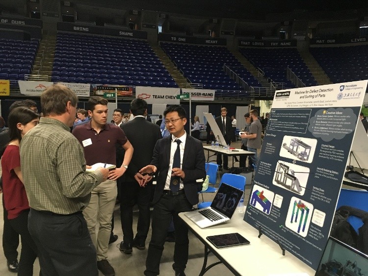 4月26日,美国宾州州立大学公布了春季工程设计项目展的获奖名单,365英国官网学生张嘉盛、彭炳诚、张宁珊和宾州州立大学Dustin sloane等共同完成的国际联合毕业设计项目“轴承加工自动定心装置设计(Automated centering of bearing rings on machine tools)”获得“洛克希德•马丁杯(Lockheed Martin)”优秀设计三等奖。