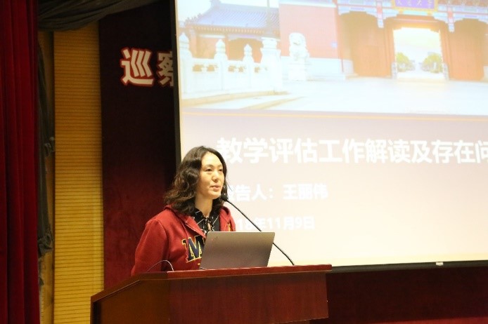王丽伟副院长传达了中央和学校有关本科人才培养方面的文件精神,并从审核评估要点、专家关注点及注意事项、审核评估推进情况、重点改进措施、下一步工作安排等方面介绍了本科教学审核评估工作。她通报了近期学校、学院范围内评估材料检查结果,并对人才培养目标与培养效果的对应关系、教学和质量保障体系的运行情况、教师和教学资源的保障程度等内容进行了阐述。她希望全院齐心协力,以最佳状态迎接教育部对本科人才培养情况的全面评估,进一步提升学院人才培养与办学水平。