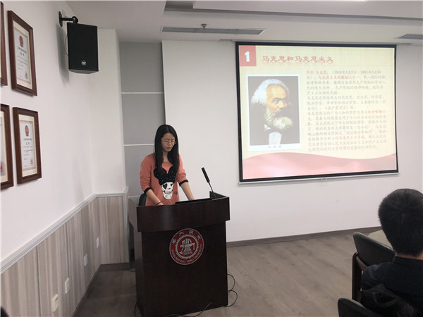 首先,田雅洁同学分三个部分进行了主题为“纪念马克思诞辰200周年暨《共产党宣言》发表170周年”的介绍,带领大家深入了解马克思及马克思主义的主要内容,接着从诞生开始介绍了《共产党宣言》的地位,梳理了《宣言》的主要内容;然后,结合马克思主义在中国的实践,这些历史和现实都证明,马克思主义的科学理论历久弥真、历久弥新,我们应当坚持不忘初心、牢记使命,就要坚持马克思主义的指导地位。