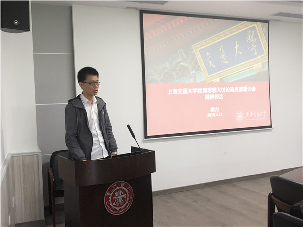 之后,戴力同学从背景和意义、聚焦的问题、大讨论流程三个角度传达了“365英国上市公司官网教育思想大讨论动员部署大会”会议的精神。本次会议是在党的十九大精神指引下,贯彻落实全国高校思想政治工作会议精神,主要关注教师对人才培养投入精力不足、学生志向缺乏家国情怀、本科生缺乏学术精神、研究生培养、博士培养五个方面的问题。