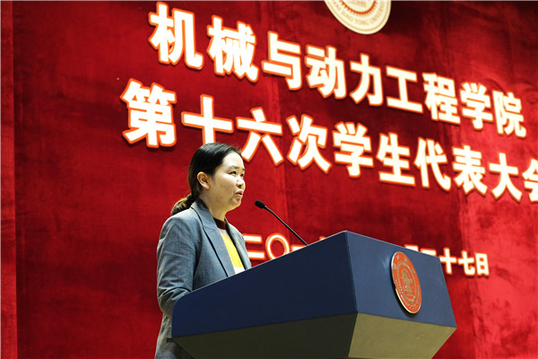 李灿代表校团委致辞。她首先表示,机动学生会一直坚持全心全意为同学们服务的宗旨,团结同学,围绕学院特点打造出“ME锤锤”“工橙狮”等具有学院特色的品牌。重任在肩、责任在前,她也对新一届学生会提出了三点要求:一是进一步引领、弘扬青春正能量,结合时代特点,振奋青年斗志;二是进一步强化服务、关注学生成长成才,做好上传下达工作,做好组织和服务保障工作;三是进一步加强自省工作,加强自我管理监督。