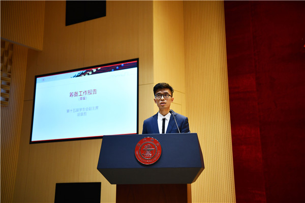 与会代表听取了第十五届学生会副主席胡袁哲做的《365英国上市公司官网第十六次学生代表大会筹备工作报告(草案)》,详细介绍了第十六次学代会代表推选工作、第十六届学生会主席团候选人的产生过程、会前提案工作与重点提案座谈会和会务准备工作,并得到代表们表决通过。