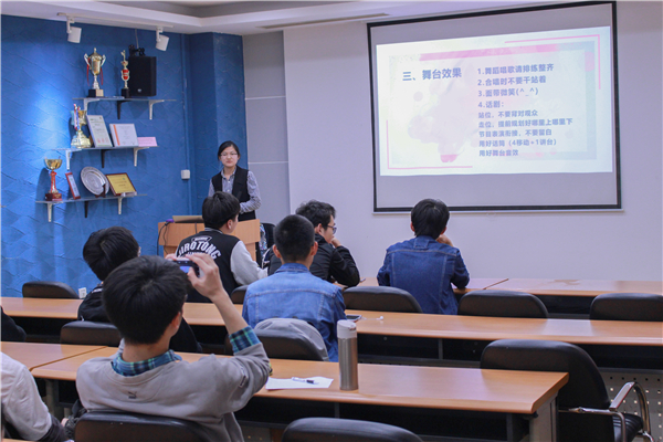 安向昕讲解了活力团支部风采大赛决赛的具体规则和流程。针对初赛时的表演情况,她提出了一系列关于风采视频、PPT、舞台效果等方面的改进建议,使各团支书对决赛的备战有了更加明确的方向。