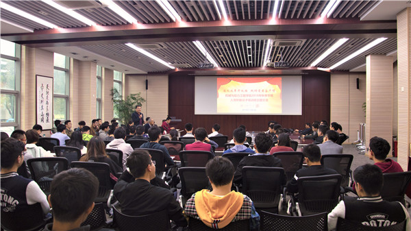 顾希垚为本次交流活动致辞,他首先表达了对金烨参加主题交流的感谢,同时他对新时代的入党积极分子提出了两点建议:一是希望同学们能将党的理论学习系统化,用固定的整段时间取代零散的碎片时间来学习时政新闻和理论知识;二是希望入党积极分子能更加积极热烈地参讨论,敢于表达自己的观点。