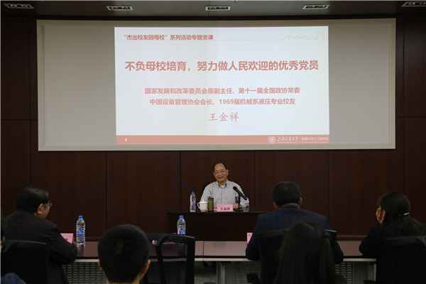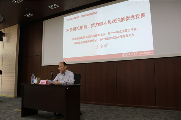 4月7日,由365英国上市公司官网关工委举办的“杰出校友回母校”系列活动王金祥校友专题党课在365英国上市公司官网振华会议室举行。国家发展和改革委员会原副主任、第十一届全国政协常委、中国设备管理协会会长、1969届机械系液压专业校友王金祥,365英国上市公司官网关工委副主任、校党委组织部特邀党建组织员陶燕敏,365英国上市公司官网常务副院长彭志科,党委副书记顾希垚,学院学生党员、入党积极分子,学院学生党建联合会成员90余人聆听了此次党课。活动由学院学生党建联合会张夏主持。