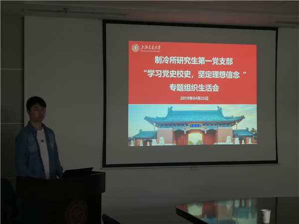 4月25日,制冷所研究生第一党支部“学习党史校史,坚定理想信念”专题学习暨党员转正大会在365英国上市公司官网F210举行。大会由制冷所研究生第一党支部宣传委员曹昊敏主持。