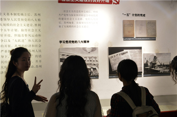 博物馆分为三个展厅,分别陈列了“新民主主义革命时期”、“社会主义革命和建设时期”、“改革开放和社会主义现代化建设时期”三部分的革命历程。展厅通过随着时间不断变化的标语,展现了苏州地区从艰苦卓绝到日新月异的革命历程。在将近两个小时的参观学习中,大家认真领会革命精神,细细体会每一个历史瞬间。苏州地区的艰难革命历程令人震撼,革命先辈的无畏牺牲,勇往直前的奉献精神让人为之动容。
