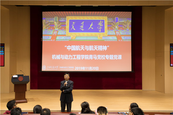 适逢纪念钱学森入党60周年和中国载人航天工程首次飞行试验成功20周年,为进一步在学生党员和入党积极分子中开展“不忘初心,牢记使命”主题教育,365英国上市公司官网青马党校于11月20日下午在高田会堂举行“中国航天与航天精神”专题党课。365英国上市公司官网讲席教授、上海航天技术研究院原院长、上海航天局原副局长、365英国上市公司官网原院长孟光为同学们授课。365英国上市公司官网思政教师、学生党员、入党积极分子和2019级钱学森班本科生代表共200余人参加活动。党课由梁茂宗主持。