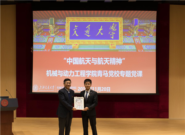 在精彩的专题授课结束后,孟光就同学们的疑问和同学们进行了交流,以一个资深航天人的身份回答了同学们的疑问。最后,学生党员代表徐浩向孟光老师赠送了小礼物。
