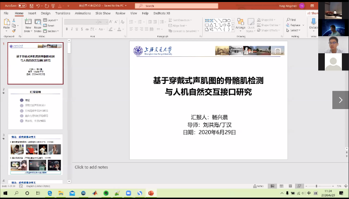 学院杨兴晨博士围绕“基于穿戴式生肌图的骨骼肌检测与人机自然交互接口研究”主题,从超声接口概念出发,依次介绍了穿戴式超声系统设计,在线精细手指动作解码,融合力感知的手势解码以及同步腕手运动解码等内容。
