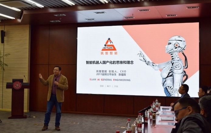 12月17日,“创业创新路上的机构学与机器人”砺远学术讲坛举办,本期论坛邀请7位机器人创业公司博士校友,深入论述当前机器人与人工智能领域的产业发展需求,围绕智能机构设计、多模态感知、类脑控制、机器学习等学科前沿与热点领域展开讨论。学院党委副书记张文明、重大装备设计与控制工程研究所(以下简称“重大装备所”)所长高峰以及90余名师生参与了活动,活动由重大装备所何俊副教授主持。