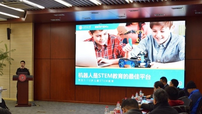 上海智槃智能科技有限公司创始人缪云洁博士以“机器人是实践STEM教育的最佳平台”为题,分享了求学经历和创业过程,强调了信仰的力量,列举了一系列教育机器人品牌,指出教育机器人的设计面临安全性高、成本高等挑战。他表示其创立的STEM教育,旨在培养学生批判思辨、创造创新、沟通交流、团队协作的能力,并就学生提出的“将学术成果产业化”问题,认为要从市场需求出发,定位产品的功能需求。