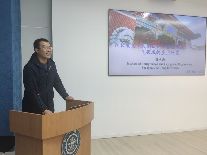 香承杰就“阳极氧化二氧化钛纳米管在能源、水、空气领域的应用研究”,分享了二氧化钛纳米管在微观结构、热力学性质、多孔性质、浸润性、离子传输特性和毛细特性等方面的研究成果,分析了二氧化钛纳米管在电子散热、太阳能蒸发等领域的应用案例。