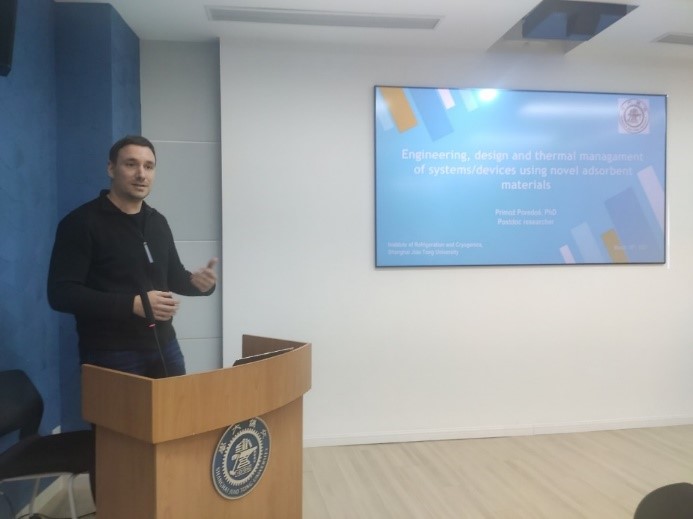 Primoz Poredos带来主题为“Engineering, design and thermal managament of systems/devices using novel adsorbent materials”的报告,分享了求学经历,介绍了博士后阶段的研究成果,包括新型涂层换热器设计和太阳能膜蒸馏的应用研究。