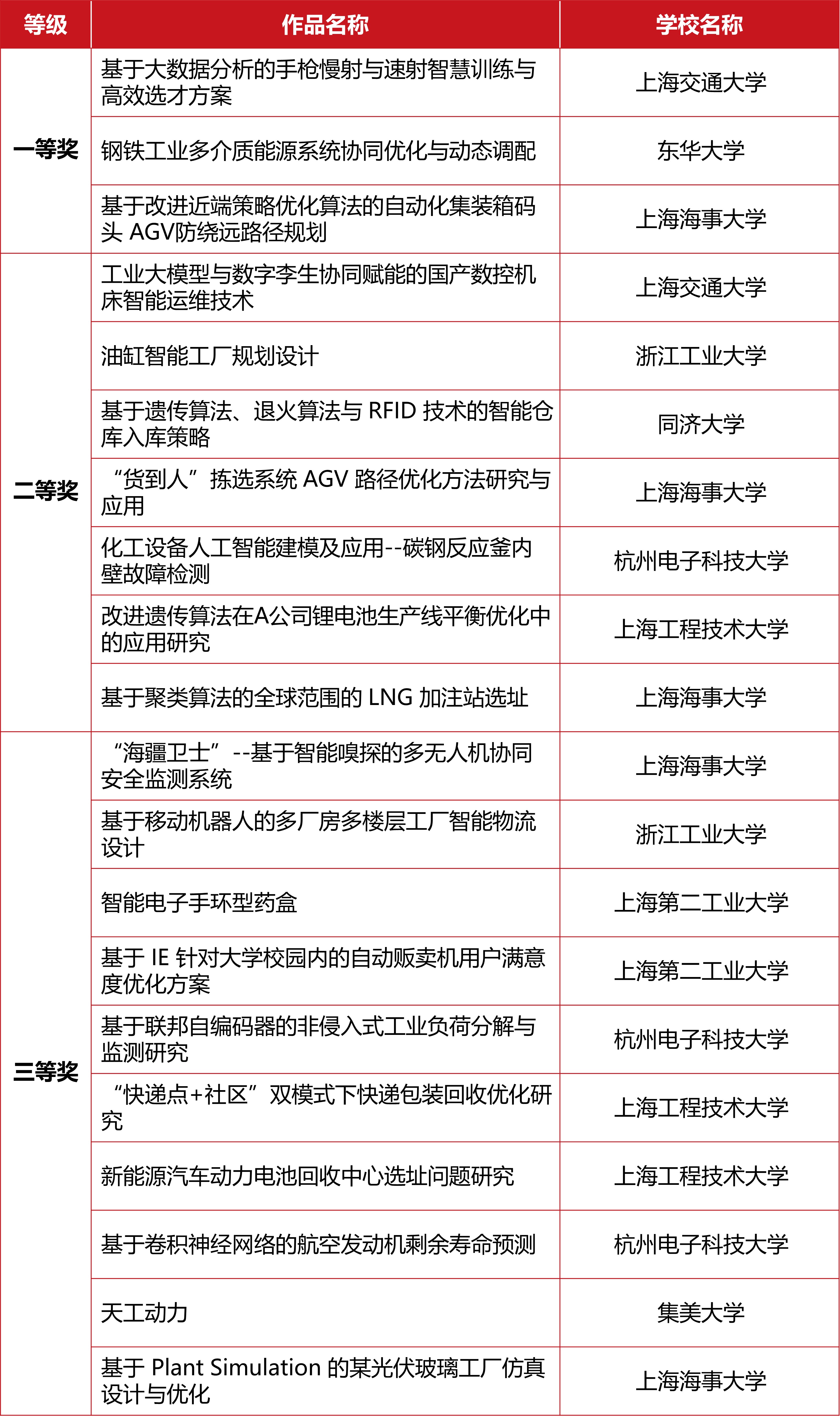 本次区域赛采用线上展示与线下评审相结合的形式,经前期各高校内部选拔,来自上海市、浙江省和福建省的36支参赛队伍参加区域赛答辩。答辩过程按照本科生组(28支队伍)和研究生组(8支队伍)分别进行。各参赛队伍详细展示了参赛作品的设计理念,体现了工业工程与精益管理研究方法解决产业实践问题的创新性和独特性。活动评选出本科生组一等奖3项、二等奖7项、三等奖10项,研究生组一等奖1项、二等奖2项、三等奖3项。