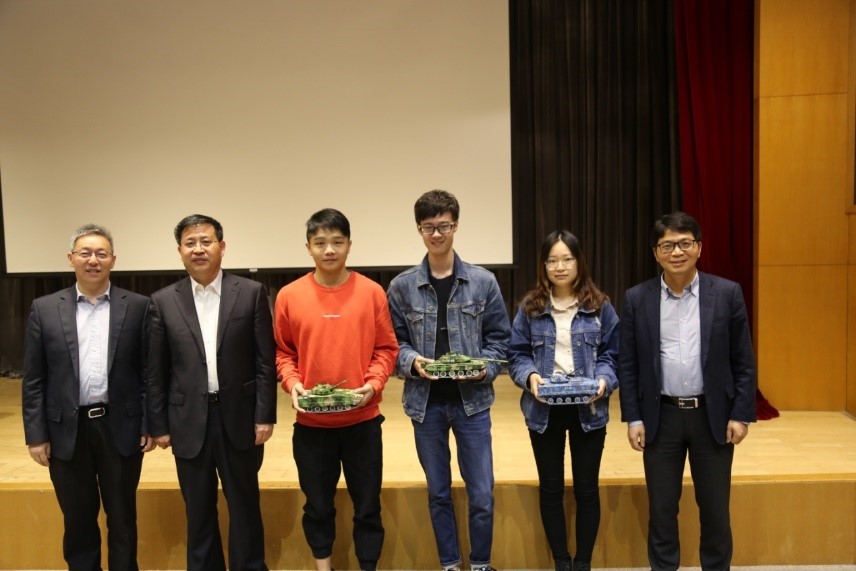 互动交流中,现场师生纷纷向李春明提出对我国坦克装甲车辆技术、发展的看法和问题,李春明做出了专业又风趣的解答。论坛最后,李春明将三个精美的坦克模型作为抽奖礼物赠送给在场的师生,并再一次表达了对交大师生殷切期望。