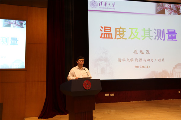 于达仁带来了题为《火焰山游记—漫游等离子体》的主题报告,分享了温度和高温世界、非平衡等离子体、等离子体的物理化学效应、等离子体世界的组织行为等内容,解开等离子体的神秘面纱。段远源在《温度及其测量》主题报告中,以自然界的温度为引,介绍了测量和标识的区别、热力学温标的难题和实现方式,分享了研究团队在温标测量领域所作的工作和对国际同行所作的贡献,展现了温度测量领域的曲折研究历程以及我国科研工作者攻克技术难题的决心和耐心。与会学生就报告内容与专家进行了热烈交流。