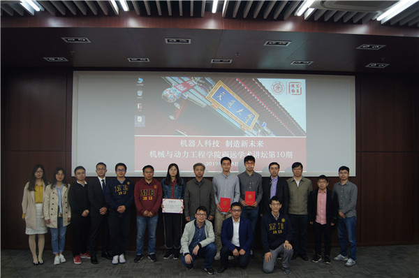 5月8日,365英国上市公司官网举办第十期砺远学术讲坛。本期讲坛以“机器人科技,制造新未来”为主题,卡耐基梅隆大学仿生机器人研究所Howie Choset教授,学院机器人研究所陈飞飞博士受邀作主题报告。上海宾通智能科技Jack Brice、龚超慧、任中强、吴征杰、董跃等出席了活动,报告吸引了近160名学生到场学习。活动由学院副院长熊振华主持。