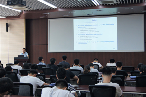 在主题报告环节,工程热物理所的赵长颖教授首先为大家带来了题为“微纳热辐射机理及其在能源领域的应用”的主题报告。他深入浅出地向大家介绍了微纳尺度下无序多孔介质的热辐射特性,阐述了在无序/有序纳米结构下能量的储存和转换机制和超材料及其表面特性的工程应用研究。随后,叶轮机械研究所的蔡伟伟特别研究员就“计算成像及燃烧诊断”作主题报告。他从层析成像吸收光谱的基本原理入手,对体积断层扫描、全光镜头成像和三像素成像技术展开了深入分析。