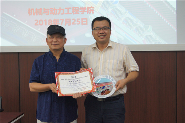 上午的主题报告邀请到苏州东菱振动试验仪器有限公司董事长、总裁王孝忠先生。王孝忠董事长从一个长者的角度,分享了自己的人生经历、创业历程和感悟思考。他表示,科学无国界,无需过度崇拜西方科学,中国人也可以做好科研;他勉励同学们要务实、要严谨、要坚定不移地对待科研,轻装上阵、从零开始、脚踏实地地对待科学事业。在交流环节,主持人和同学们先后提出了产品效益与技术创新的关系、知识产权的作用与保护以及工科毕业生就业需求等问题,王孝忠董事长分别进行了耐心详细的回答,在场同学表示收获颇丰。最后,王孝忠董事长受聘担任机械动力学院“职业生涯导师”,党委副书记顾希垚老师赠送纪念品。